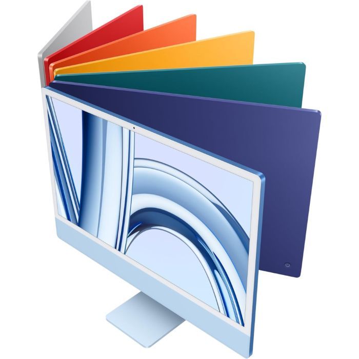 FITS PERFECTLY IN YOUR SPACE — The all-in-one desktop design is strikingly thin, comes in four vibrant colors, and becomes the centerpiece of any room. - IMMERSIVE DISPLAY — The 24-inch 4.5K Retina display features 500 nits of brightness and support for 1 billion colors. Everything from streaming movies to editing photos is vivid and colorful. (Actual diagonal screen size is 23.5 inches.)